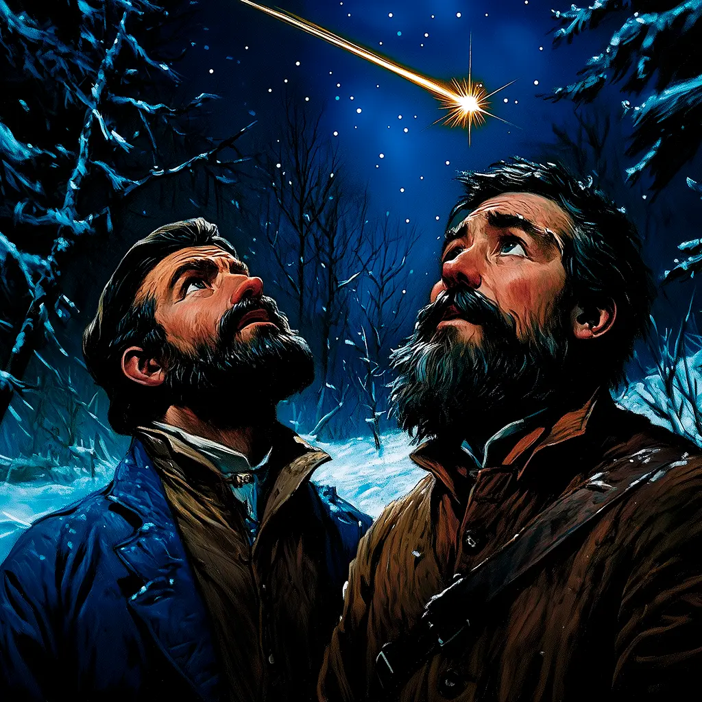 Pero mientras estaban lamentándose mutuamente de su miseria ocurrió una cosa extraña: cayó del cielo una estrella muy brillante y hermosa. Se deslizó por el firmamento, dejando atrás a las otras estrellas en su curso, y, mientras la miraban asombrados, les pareció que se hundía detrás de un bosquecillo de sauces que había muy cerca de un pequeño redil, no más que a un tiro de piedra de distancia.